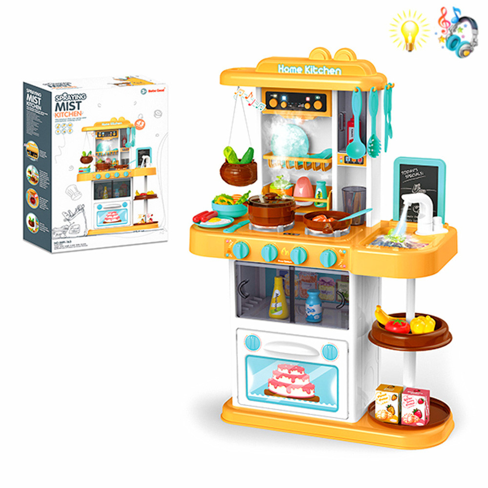 Висока детска кухня с 43 аксесоара, светлинни и звукови ефекти, печка, симулираща готвене на газ и мивка с течаща вода!