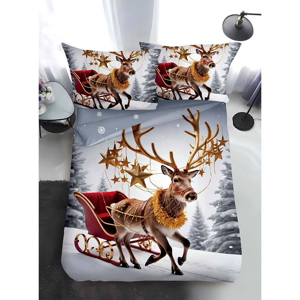 Двулицево коледно спално бельо, размер за приста (реално изображение) EmonaMall, 4 части - Модел S17345