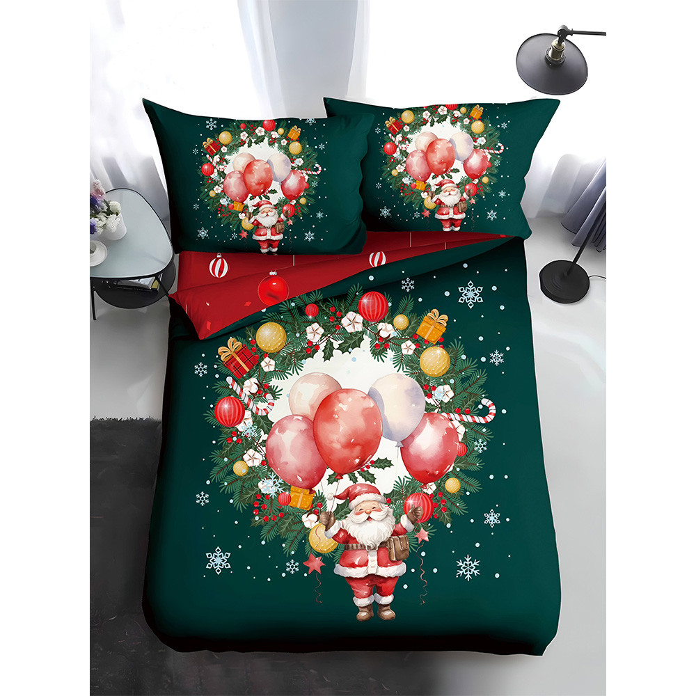 Двулицево коледно спално бельо, размер за приста (реално изображение) EmonaMall, 4 части - Модел S17368