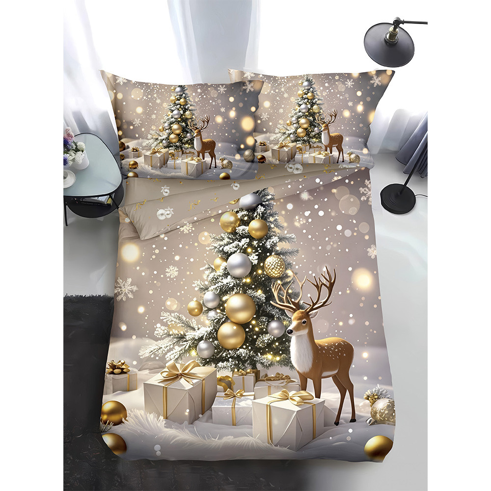 Двулицево коледно спално бельо, размер за приста (реално изображение) EmonaMall, 4 части - Модел S18769