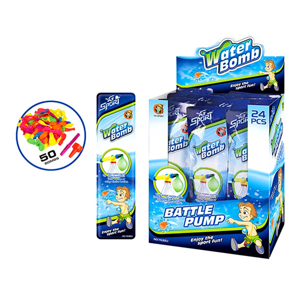 Комплектът съдържа помпа, накрайник за кранче на чешма, матрица за завързване на балончетата и 50 балончета - водни бомбички.