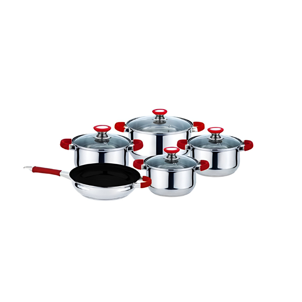 Основни характеристики: Комплект съдове за готвене Muhler модел MR-975, 9 части, Сив/Червен - Код G8995