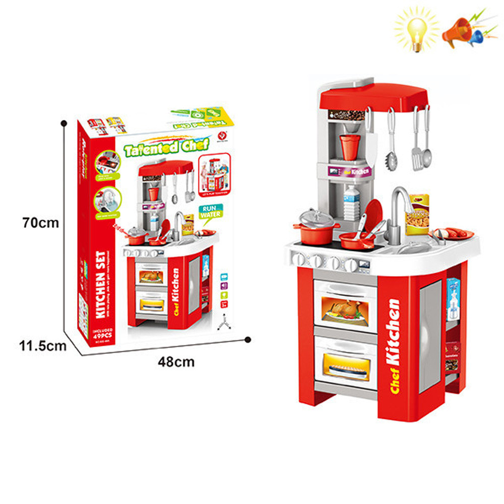 Функции: реална функция течаща вода от крана на мивката, светещи котлони, реалистични звуци на приготвяне на храна, отваряеми врати на фурните и хладилника.
