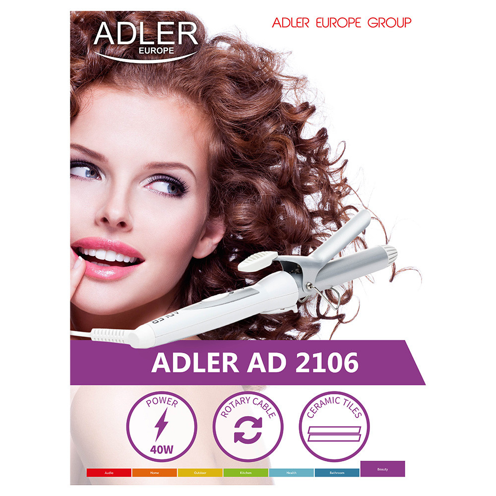 Основни характеристики: Маша за коса Adler AD 2106, Керамична, 40W, Бял/Сив - Код G8971