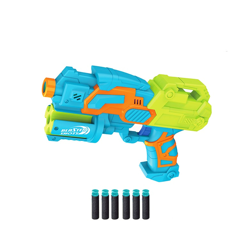 Комплектът съдържа пистолет и шест дунапренени стрели с гумени вакуумни върхове.