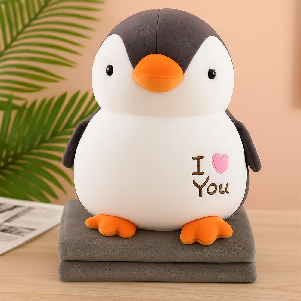 Тази сладка плюшена играчка крие изненада – с едно разкопчаване на ципа се превръща в топло и пухкаво одеяло 160х105 см, готово за приключения или нежна дрямка.
