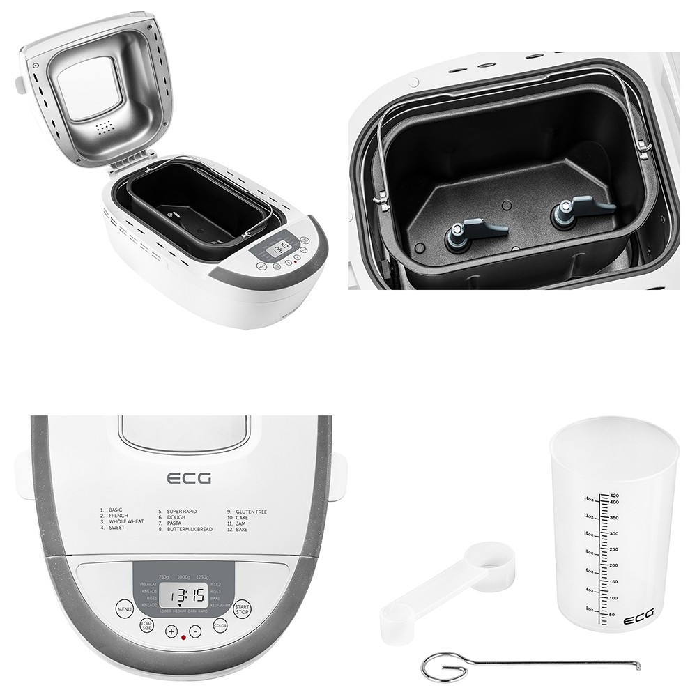 Основни характеристики: Хлебопекарна с две бъркалки ECG PCB 82120, 850W, Бял - Код G5114