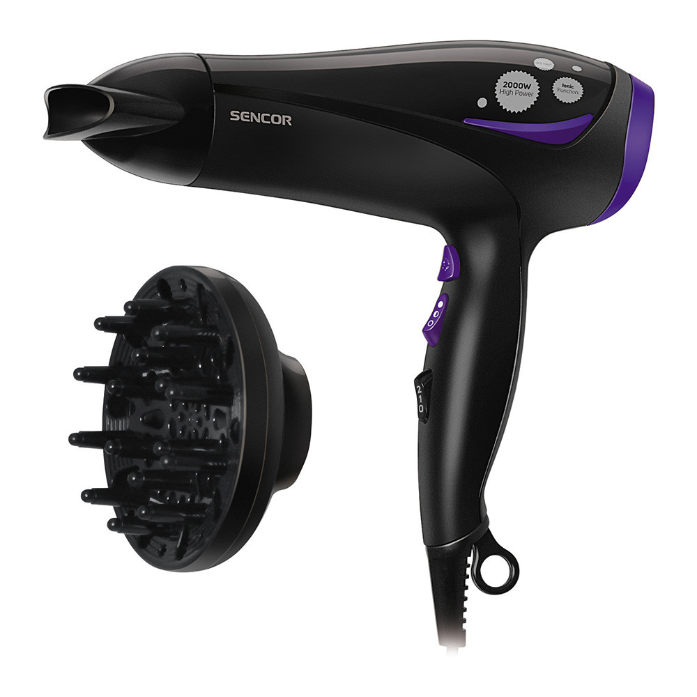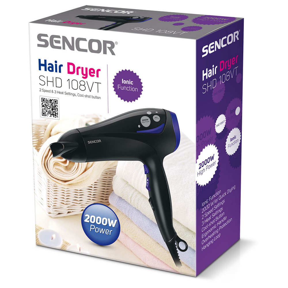 Основни характеристики: Сешоар Sencor SHD 108VT, 2000 W, Йонизация, Дифузер, Черен - Код G5231