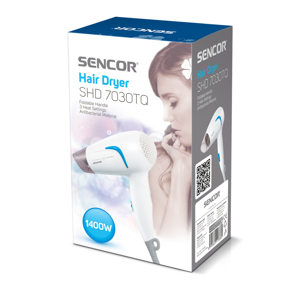 Основни характеристики: Сешоар Sencor SHD 7030TQ, 1400W, Бял/Син - Код G5239