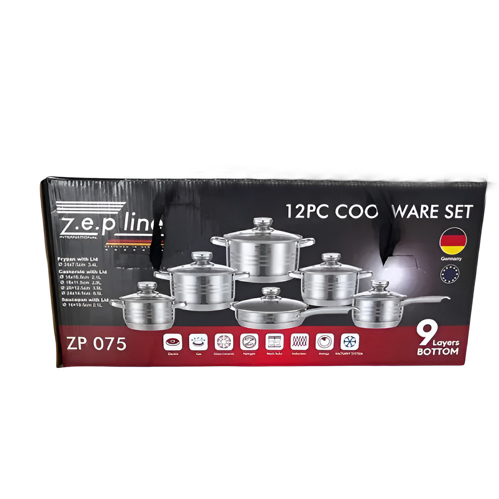 Основни характеристики: Комплект съдове Zepline ZP-075, Неръждаема стомана, 12 части, Инокс - Код G8958