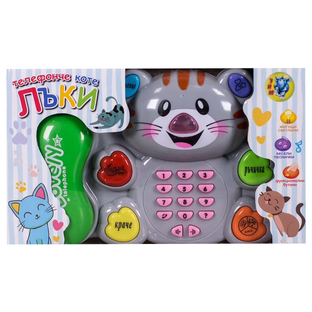 Функции: светещ елемент, реалистични телефонни звуци, бутони за регулиране на силата на звука, бутон "Функции" за преминаване в различни режими на работа.
