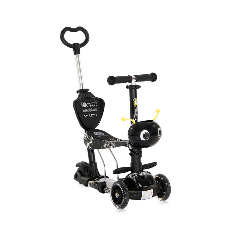 Основни характеристики: Тротинетка LORELLI SMART PLUS BLACK FLASH, До 20 Кг., Регулируема родителска дръжка в 3 позиции, Светещи гуми, Черен - Код L11528